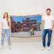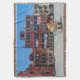 Pintura da praça de Veneza. Carrinho com caixas no meio da antiga praça italiana com edifícios coloridos em Veneza, Itália. Correio, serviço de entrega em Itália. Caixas deixadas sozinhas.
