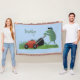 Um sapo verde engraçado cortando a grama no estilo de desenho animado do bobo.