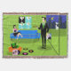 Este Casal de desenho animado urbano apresenta o desenho animado de um apartamento de penthouse elegantemente decorado, com vista para uma linha do horizonte. O apartamento tem um chão verde e uma parede de tijolos verdes. Na parede estão quatro Classic Movie Martini Stretered Canvas Prints, também disponível na loja Zazzle da StrangeLittleOnion (dica, dica!). Três dos impressões apresentam fundo turquesa e um está sobre fundo preto. Abaixo das telas impressas, está um sofá azul, meio século moderno. Uma beleza sofisticada e cabeleira está sentada no sofá. Ela está vestindo um vestido preto clássico com um corpete rosa quente. No lado oposto da sala há um homem suave, alto, escuro e bonito. Ele está vestindo um terno preto, camisa branca e gravata verde. Por um lado, ele está segurando um álbum de vinil e, por outro, ele está segurando um cobrir divertido. No chão, há um otomano laranja segurando um toca-discos verde e preto. Projetado contra o otomano é outro cobrir de álbum com um registro sendo lançado para fora do lado. Há também três álbuns coloridos de vinil espalhados pelo chão. Atrás do homem, podemos ver através das portas de vidro deslizantes em uma varanda verde. Um gato branco vestindo uma coleira rosa está empoleirado na borda da sacada. Além do gato, há uma linha do horizonte da cidade que respira, cheia de arranha-céus e uma lua crescente amarela. Se é assim que a outra metade vive, inscreva-me!
