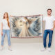 A luminous winter angel drifts through a quiet snowy landscape, carrying a softly glowing lantern that casts a warm golden halo against cool blue tones. Her flowing gown and feathered wings create an ethereal sense of grace, framed by evergreen branches, pale poinsettias, and delicate botanical details that enhance the peaceful Christmas atmosphere. The gentle contrast of warm light against frosted surroundings evokes hope, serenity, and sacred stillness, making this design ideal for holiday décor, spiritual themes, and winter storytelling. Elegant linework, soft watercolor shading, and a dreamlike palette blend together to create a timeless seasonal scene full of wonder and tender emotion. AI generated artwork.