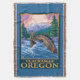 A cena da pesca com mosca - Clackamas, Oregon - poster das viagens vintage foi criada em 2007. Esta imagem descreve cenas de Clackamas, OU.