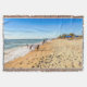 Este cobertor do lance mostra uma fotografia original de ZoeSPEAK de uma cena de praia na estação de inverno. A praia fica na costa do Golfo da Flórida, e o dia foi brisa, com pessoas soltando e tocando na beira da água do oceano sob um céu azul claro. Aproveite a vista.