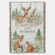Design de Molho para Celebração de Whimsical, que apresenta cervo, coelho e raposa no fundo de uma árvore de pinheiro.