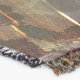 Lindos padrões de abstrato em castanhos escuros, com cinzas azuis e ouro amarelo.