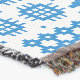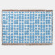 Uma cobertura atrativa do lance, com um teste padrão de motivos tradicionais da tapeçaria de Galês no azul em um fundo branco que você possa mudar se você deseja (edita o botão > o fundo).