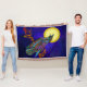 Silhueta de corvo desenhada e pintada em uma mão sobre uma lua de outono - da minha série de Arte Elétrica.