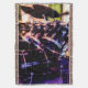 O trabalho de arte neste cobertor de lente é uma fotografia original de ZoeSPEAK de um conjunto de tambores. Os tambores pretos brilhantes com suas jantes de prata refletem as cores das luzes do estúdio, azuis, vermelhos e verdes. Os Cymbals acima dos tambores esperam para serem atingidos.