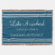 Jogue Blanket Chic Blue e White com o nome de seu lago, o nome de sua família e as coordenadas do mapa. Lakehouse moderno, script de pincel, coordenadas de mapa, latitude de longitude,