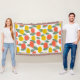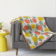 Este cobertor tem um design escandinavo de flores e folhas espalhadas em coral, ouro e sábio verde.