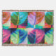 O abstrato original, trabalho de arte por ZoeSPEAK, neste cobertor de lama, começou como uma fotografia original de uma folha de uma planta de uva-do-mar. O design explora a variedade de combinações de cores vindas da luz brilhante e áreas de sombra da folha lisa, quase oval, e do fundo. Há vermelhos brilhantes, pinks, lavandas, aqua e azuis escuros, laranja e verde escuro e claro. As veias e o caule da folha adicionam dimensão e cores.