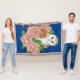 Cobertor Coruja-Celeiro Azul Flores Rosa