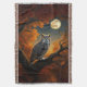 Uma coruja excelente corada em uma árvore no outono sob a luz de uma lua de cheio.