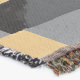 Le motif géométrique Noir, Gris et Or/Jaune Moutarde est mis en valeur par la technique de tissage, ce qui lui donne un aspect légèrement vieilli et artisanal, idéal pour un décor bohème chic, moderne ou rustique.