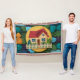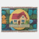Um padrão de ícone caseiro cativante com uma casa encantadora com um telhado vermelho e cerca de piquete branca. A casa é aninhada em meio a uma atmosfera acolhedora e convidativa, cercada por uma variedade de texturas e cores. O padrão inclui um cobertor de velo, adicionando ao senso geral de calor e conforto