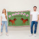 Cães dachshund e flores cor-de-rosa, cor de fundo personalizada.