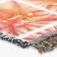 Entre as maravilhas da natureza, dahlias são uma incrível família de flores, tantas formas, cores e tamanhos. A fotografia original deste cobertor floral de depressão por MaeFlowers apresenta um estreito de uma flor espantosa no cheio, uma esfera de pétalas cor de pêssego, flutuando no ar. A foto tem uma borda macia, esmaecida para branca.