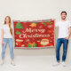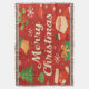 Este design de Cobertor de Lançamento apresenta um Natal Tradicional com charme lúdico e calor festivo. As cores são fundo vermelho vibrante, tipografia e flocos de neve em branco esbranquiçado, acentos verdes e dourados, toques de bege e Papai Noel alegre em vermelho. Possui um texto central “Feliz Natal” em letra elegante,