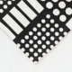 Um design de padrão-abstrato desenhado à mão, constituído por arranjos de pontos de uma variedade de tamanhos intercalados com retângulos e linhas sólidos.
