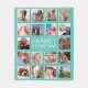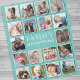 Folheto personalizado com um fundo teal de tendência que pode ser mudado para qualquer cor, 18 quadros de imagens de colagem de fotos quadradas, a citação "família é tudo", seu sobrenome e o ano estabelecido.