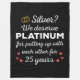 Diversão design, perfeita para qualquer um que está casado há 25 anos e para uma cerimônia de renovação do voto de casamento. Ele faz um excelente combinando roupa para casais! 'Prata? Nós merecemos Platinum por se manter juntos por 25 Anos de citação por um casal que se casou há 25 anos ou um casal renovando votos de casamento no seu aniversário de prata. Você é um marido ou mulher romântico? Acenda seu estilo com esta arte! presente de excelente para seu amigo que se casou há 25 anos, marido ou esposa de 25 anos, ou pai e mãe celebrando seu aniversário de casamento de 25.