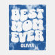 A tipografia retrógrada de Groovy que diz "Melhor Mãe Nunca" em fundo de corante azul, facilmente personalizada com o nome.