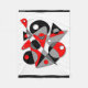 Design geométrico abstrato digital em vermelho, cinza, branco e preto, pela Rockett Graphics.