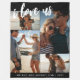 O moderno cobertor de colagem com o script de pincel preto-e-branco "Eu amo-nos" com nome personalizado e ano.