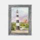 O farol unido preto e branco distintivo de Cabo Canaveral em Florida é descrito nesta pintura da aguarela por JC Prida. No fundo, um foguete descola do Centro Espacial Kennedy próximo. O farol é cercado pelas hortaliças, com um anexo pequeno ao lado dele. O céu é azul com tinges do roxo atrás do farol, e o fumo e o fogo do lançamento do foguete no fundo no direito. Este farol de Cabo Canaveral substituiu o original farol do tijolo de 65 pés, e foi iluminado pela primeira vez em 1868. Era original branco; as bandas pretas foram adicionadas em 1873.