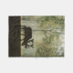 Uma ilustração de uma silhueta dos alces/alces com os antlers no gráfico de vetor da floresta. Nos verdes e nos marrons do grunge. Caça e design da imagem dos caçadores. Cenário selvagem da vida.