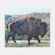 Um bisão americano imponente, com sua casaco rude e poderosa postura, caminhando entre planícies cênicas e de pastagem. O ambiente circundante melhora a beleza selvagem desse bicho norte-americano icônico. Trabalho de arte por Sally Lannier/Painted Dreams Designs
