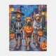 Pastores Anatólios Adoráveis vestidos com fantasias lúcidas de Halloween carregar baldes de abóbora enquanto trick-or-tratando sob o céu iluminado pela lua. Este design festivo destaca a forte construção, a natureza protetora da raça e a personalidade calma, capturando perfeitamente a atmosfera assustadora e divertida da noite de Halloween. Uma celebração impressionante para amantes de cachorros e fãs do Halloween.