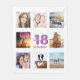 Um presente para o aniversário de 18 anos (ou qualquer idade) de uma garota, celebrando sua vida com uma colagem de 8 fotos suas. Modelos para um nome, 18 anos e uma data. Data de nascimento ou data do aniversário. Letras cor-de-rosa e púrpura. Fundo branco colorido.