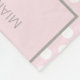 O anúncio de nascimento de uma menina bonita mantém o cobertor de velinha com um elefante adorável segurando um balão de brilho rosa e prateado em um fundo branco de bolinhas. Personalize com o nome, a data de nascimento, o peso e o comprimento do seu filho. Este cobertor seria tão fofo na parede da sua creche de criança.