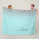 Aqua Azul - Verde e Brilho Prateado Lantejoulas Monograma Nome e Inicial Cobertor Fleece. Isso torna o presente perfeito para 16 anos, casamento, chá de noiva, aniversário de casamento, chá de bebê ou festa de despedida de solteira para alguém que ama luxo e estilos chiques.