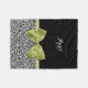 Personalize acrescentando o nome de qualquer garota feminina a este bonito cobertor branco e preto da folha de elétrodo-leopardo com uma fita verde-primavera com uma gira amarrada em um arco elegante. Este design de impressão chic e na moda é uma imagem impressa plana e não contém fita real.