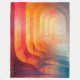 Esta obra de arte abstrata inspira-se no design modernista de meados do século, misturando geometria suave com uma paleta de cores quente e luminosa. Formas em camadas semelhantes a arcos fluem para dentro, criando uma sensação de profundidade e movimento suave, como se o espectador estivesse a atravessar uma passagem arquitetónica luminosa. Vermelhos ricos, laranja queimado, amarelo dourado e azul-esverdeado suave desvanecem-se perfeitamente uns nos outros, produzindo uma atmosfera nostálgica e contemporânea.