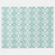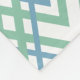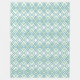 Este cobertor de velo grande tem um design de deco de arte que sobrepõe os diamantes em verdinho (verde) e azul num campo de branco.