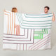 Este cobertor de velo grande tem um design de arte de linhas roxo, rosa, laranja e azul.
