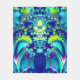 Arte fractal abstrato em cores arrojadas e vibrantes: azul, ciano, verde e roxo.