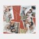 Um cobertor da família de velo de Natal, moderno e elegante, chamado boho terracotta, com quatro lindas fotos da sua família numa colagem incomum embelezada com pinheiros pintados manualmente a aquarela. (As fotos são de Pexels fotografados por Ketut Subiyanto e apenas para amostra. Por favor, substitua-o pelo seu.)