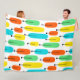Este cobertor de velo grande tem um design moderno do século médio de longas ovais em amarelo, laranja, verde e turquesa com linhas pretas com círculos nas extremidades.