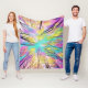 Este cobertor de velo é uma foto de olhar para cima através das árvores no céu que foi alterado de uma forma divertida e colorida. Fique quente com este cobertor em cores púrpura, amarela, turquesa e branca.