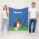 Adicione um nome ou outro texto para criar um cobertor personalizado que seja perfeito para amantes de cães. Este cobertor de velo tem uma ilustração de um Pastor australiano junto com algumas folhas tropicais verdes com espaço para adicionar um nome em letras brancas em negrito nas costas.