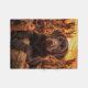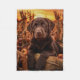 Abraçar o charme rústico do outono com nosso cobertor atordoante mostrando um adorável cachorrinho Labrador de Chocolate em um campo de colheita enquanto o sol se põe no fundo.
