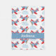 Um cobertor vermelho e azul padrão de avião. Personalize facilmente com o nome de uma criança. Perfeito para um menino ou criança se abraçar.