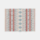 Padrão de motivos mistos asteca em detalhes de cor azul, vermelho-burlu, preto e creme em um design de fundo de cor creme. V = padrão vertical.