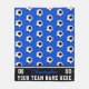 Design de padrão repetido da bola de futebol em um fundo azul com uma banda preta para personalizar com seu nome, nome da equipe e número do jogador. Excelente para jogadores e fãs de futebol intramurais e escolares.