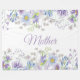Grande cobertor de velo com flores bonito roxas e azuis e cor d'água e verde. "Mãe" é escrita no centro em uma fonte elegante. Personalize com qualquer texto que você escolher.