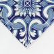 Este produto tem um design intricado com fundo azul escuro e padrões ornamentais brancos. O design lembra os estilos tradicionais de cerâmica ou porcelana, que podem interessar a quem aprecia a estética clássica ou vintage.