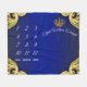 Um cobertor de marco com uma bela coroa azul e dourada real sobre um fundo azul real e espiral dourada. Este belo cobertor de marco do bebê príncipe é perfeito para as sessões de fotos de marco do bebê. Basta encontrar um casal bonito de caixilhos de ouro e colocar um ao redor do número e o outro ao redor do dia, mês ou ano, e colocar o bebê sob a área do nome. Você também pode mover a coroa e o nome conforme necessário. Você também pode adicionar mais texto à área inferior e alterar a fonte para sua preferência.